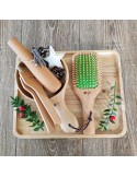 The BAMBOO KIT is a refined, elegant and completely eco-sustainable salon kit as it is carved from high quality Chinese guger wood. Includes: CLASSIC PUDDLE BRUSH: Brush with a unique design, made of wood and bristles obtained from the Chinese guger tree, removes any hair residues, detangles them perfectly and combats the electricity effect. try its 3D bearing! BOWL for color mixing BRUSH for applying colour MORTAR TRAY