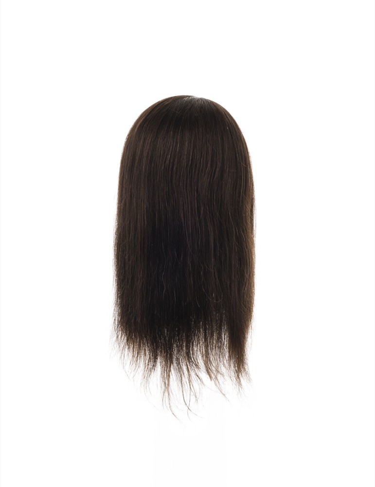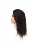 Female head model with 100% hand implanted human hair. High quality hair for any kind of treatment.