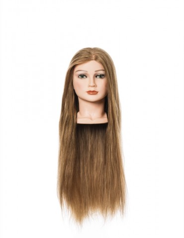 Female head model with 100% hand implanted high quality human hair. The high density and the lenght makes it ideal for advanced coiffures. This head model, if treated in the correct manner, can last for infinite coiffures.