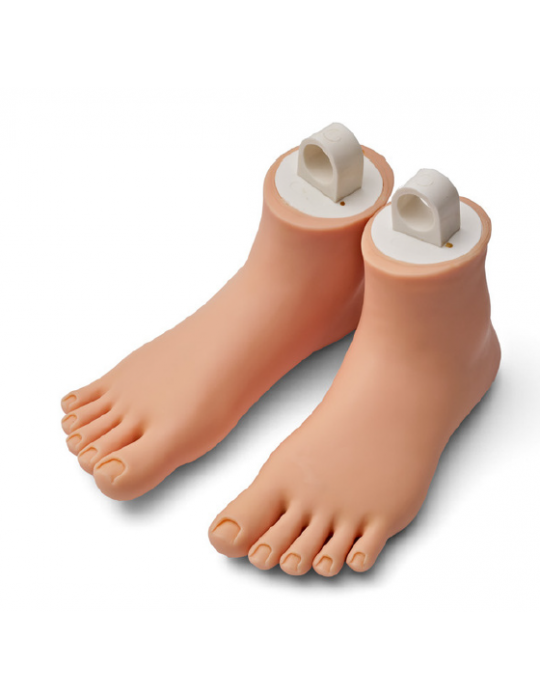 Coppia di piedi in silicone morbido adatti sia per trattamenti di massaggio / riflessologia sia per l'applicazione di smalto e gel (è incluso il kit con 20 tip da applicare).
