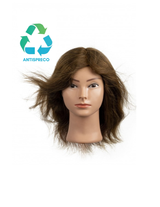 Testamodella femminile, 100% capelli umani impiantati a mano. Ideale per i primi corsi di taglio e colore. La Testamodella presenta macchie di colore sul viso.