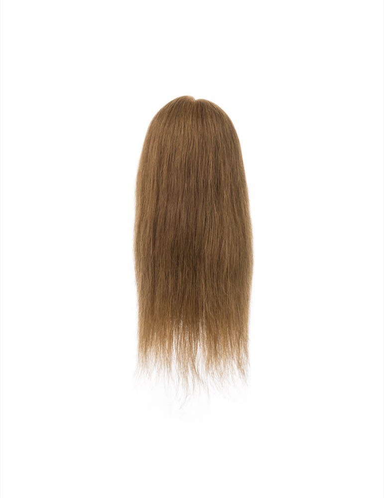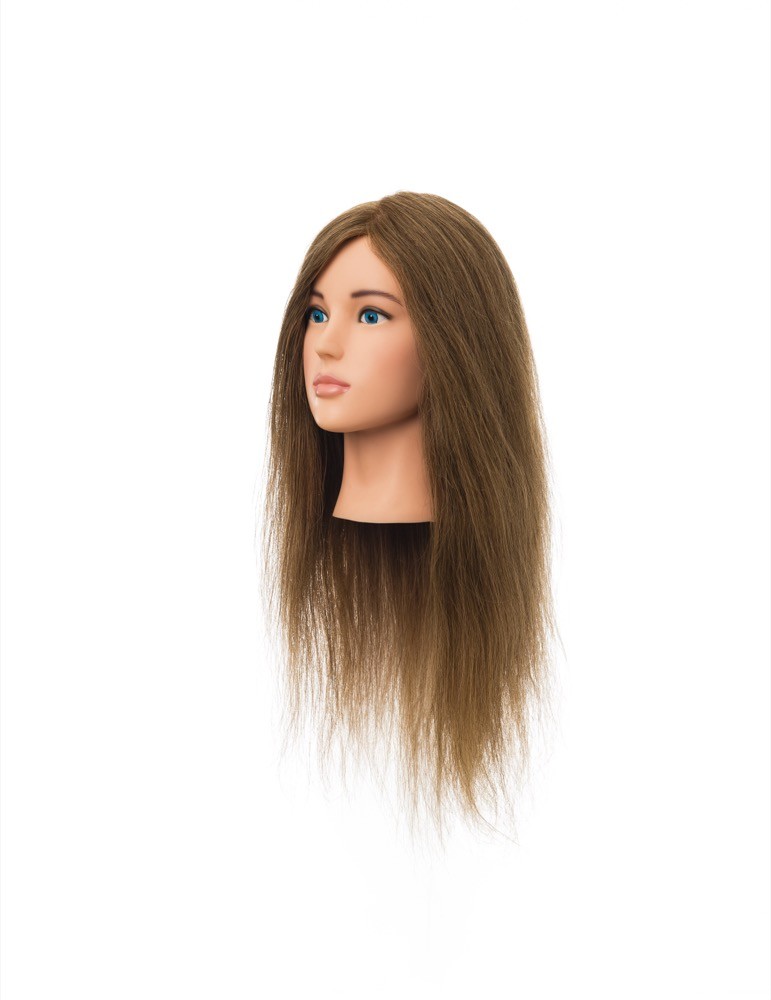 Testamodella 100% capelli umani impiantati a mano, lunghezza ideale per acconciature.