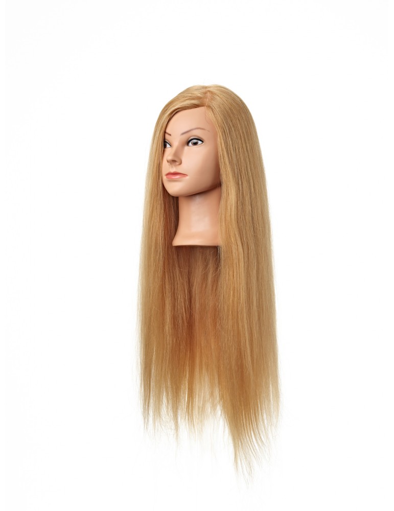 Testamodella capelli misti 50% umani 50% sintetici, materiali ottimi per gli intrecci. Modello specifico per acconciature. Sconsigliato per decolorazioni, tinte, permanenti e pieghe.