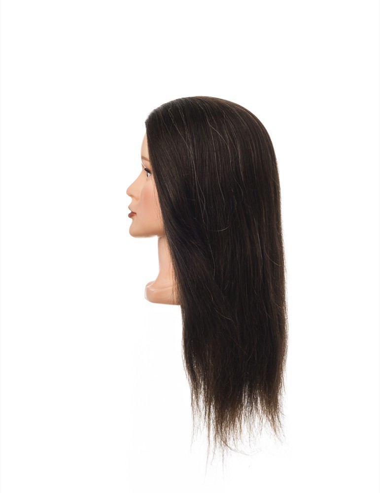 Testamodella 100% capelli umani impiantati a mano, capelli di altissima qualità per risultati impeccabili. Adatta a qualsiasi tipo di lavorazione.